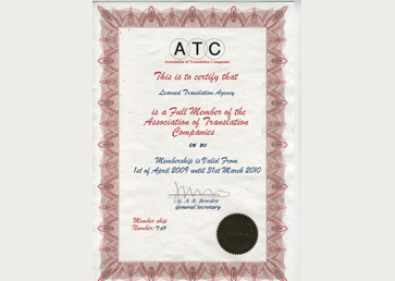 • 英国翻译公司协会会员ATC